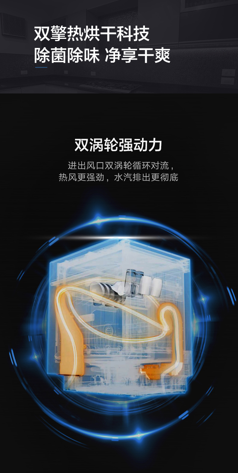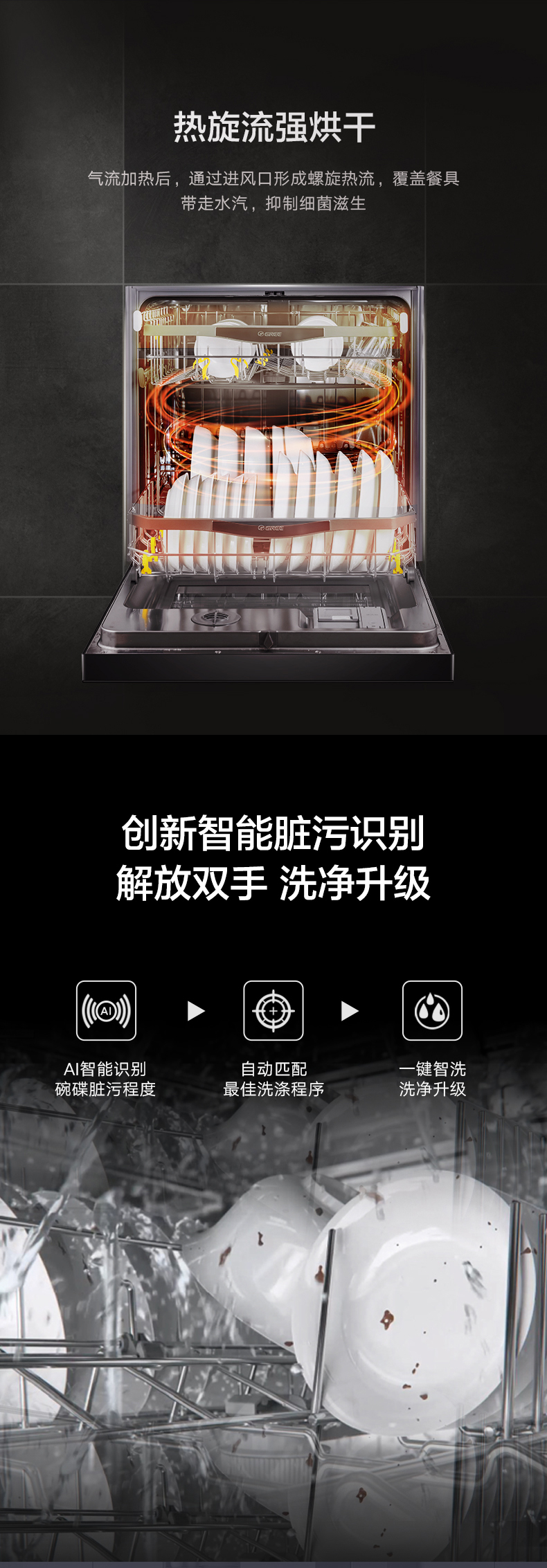 搭載雙擎熱烘干科技,除菌又除味;洗烘存一體,智能臟污識(shí)別,除菌率達(dá)99.99%