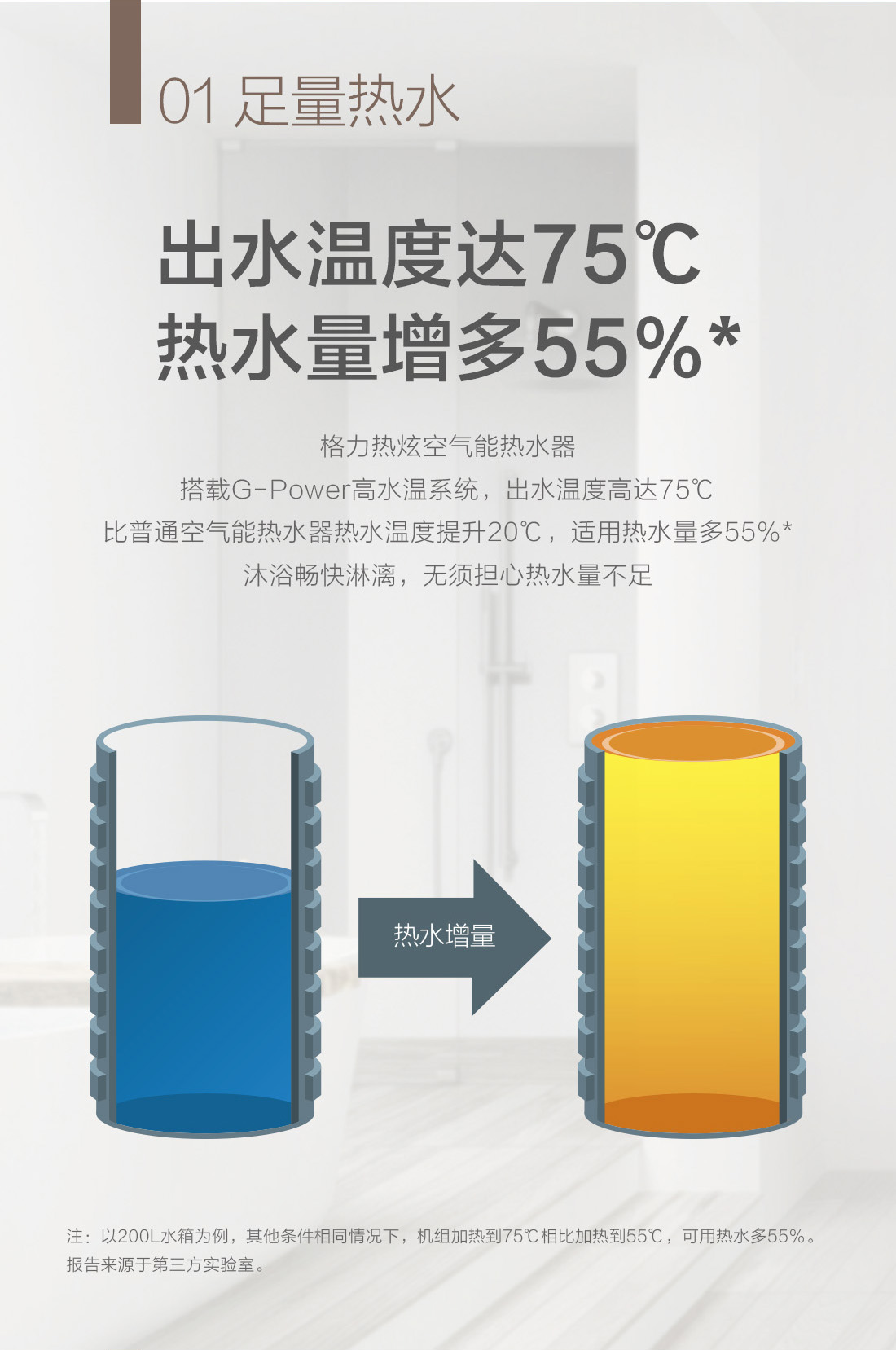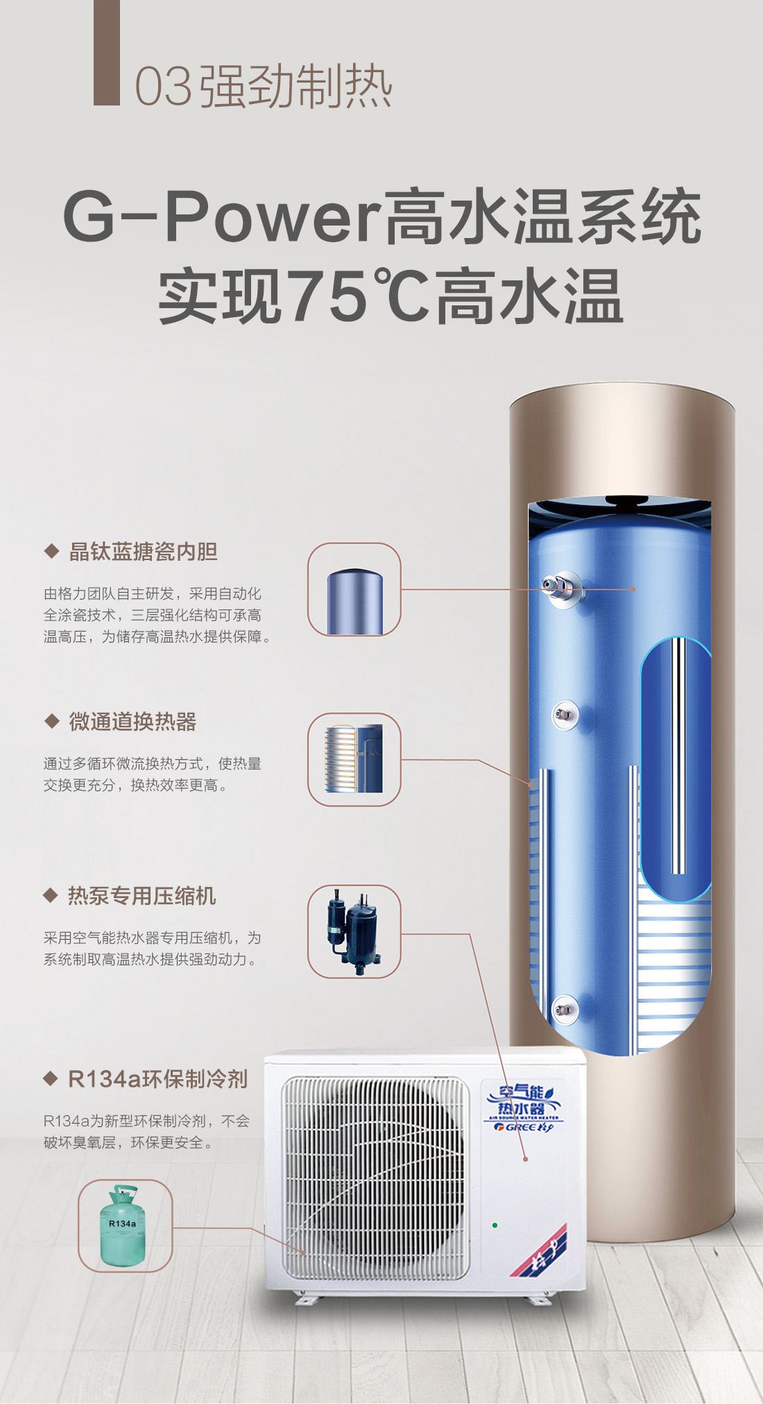 高溫大水量,沐浴暢快享,搭載G-power高水溫系統(tǒng),成就水溫更高,水量更大的空氣能熱水器,更達(dá)1級能效,省電高達(dá)75%,全家人暢快享受的沐浴選擇。
